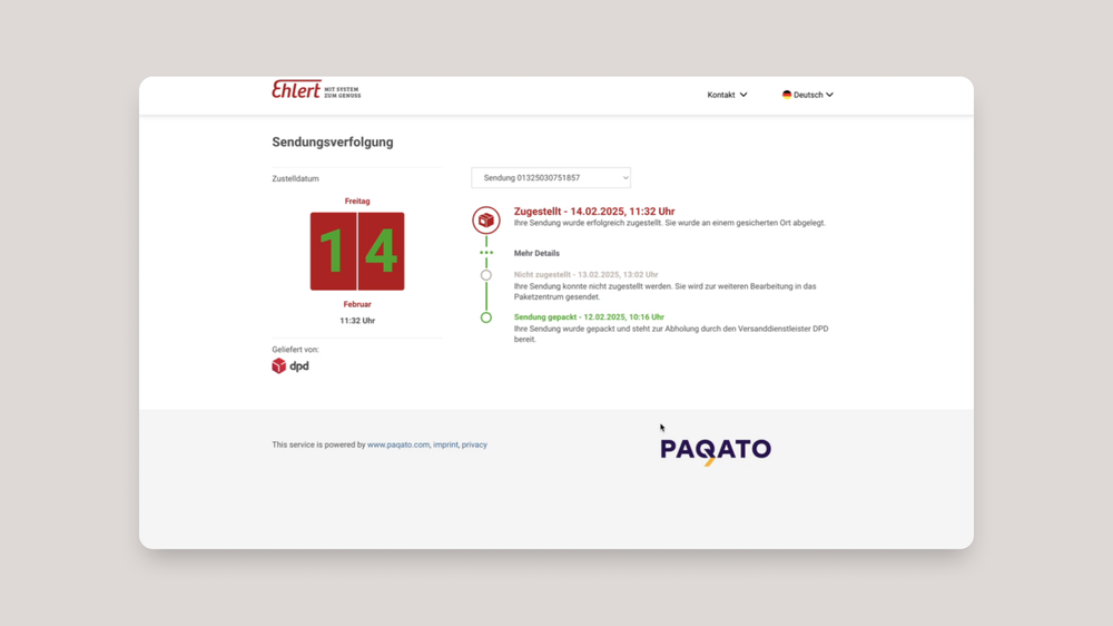 Per Klick auf „Sendung verfolgen“ gelangen Sie direkt zum Live-Tracking beim jeweiligen Versanddienstleister.